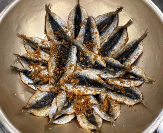 今日のいわしのしょうがじょうゆかけは、開きにして中骨を取ったいわしを焼き物機で焼いて、しょうがじょうゆをかけています。しょうがの香りが広がり、香ばしく焼かれたいわしに調味液が重なり、とても美味しかったです。