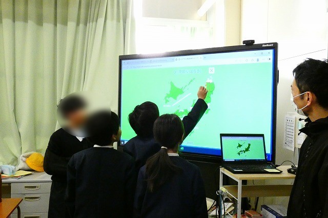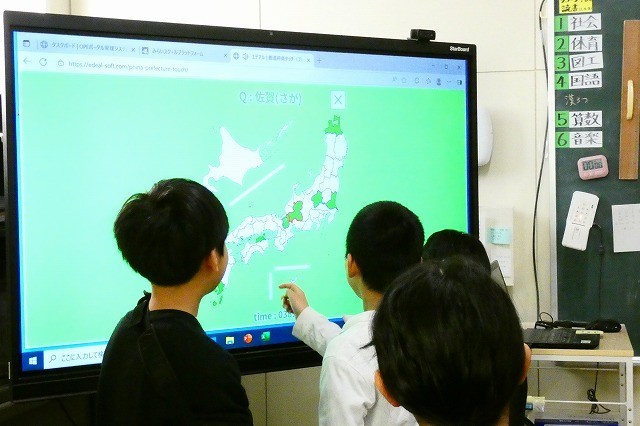 電子黒板やタブレット端末のタタッチパネル機能を使って、都道府県クイズ。