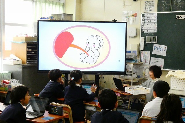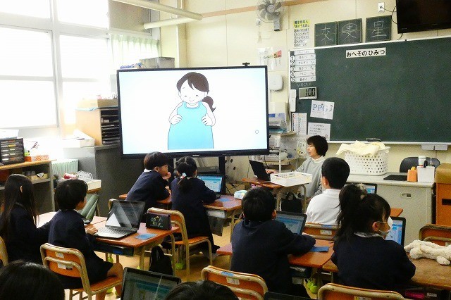 生活科の時間に保健室の先生から「おへそのひみつ」についてお話を聞きました。