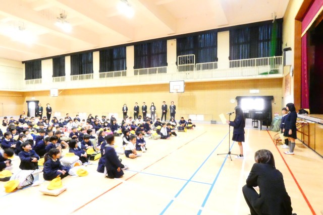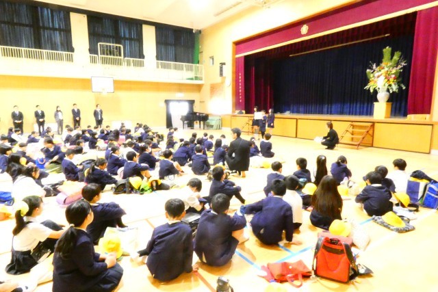 一学期の始業式を行いました。久しぶりに集まった2年生から6年生まで児童の前で、まず転任してきた教職員の紹介、転入生の紹介がありました。目標をもつことの大切さについての校長からの講話、新しい担任の発表、6年生代表による決意表明と続き、最後は、みんなで元気に校歌を歌って、1年のスタートを切りました。