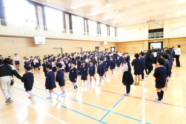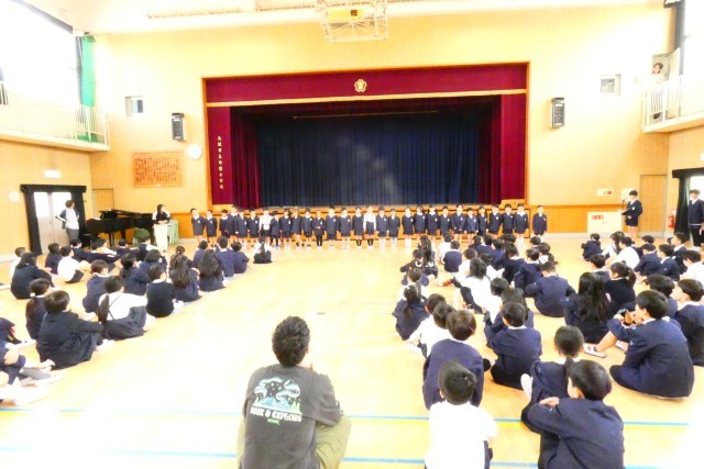 本日の朝、新入生と在校生の対面式を行いました。少し緊張気味の1年生でしたが、代表の6年生児童から歓迎のメッセージを伝えると、1年生は少しリラックスしたようです。最後には1年生からもしっかりとした「よろしくおねがいします」という言葉が聞かれました。