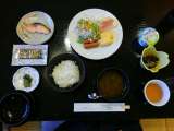 朝食もたくさんのおかずが並んでいます。 あおさのお味噌汁が香りよく、この地方なら...