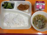 今日の給食は、「ごはん、牛乳、たらフライ、うすくず汁、こまつなのごまあえ」でし...