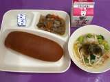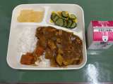 今日の給食は、「チキンレバ−カレーライス、牛乳、きゅうりとコーンのサラダ、洋な...