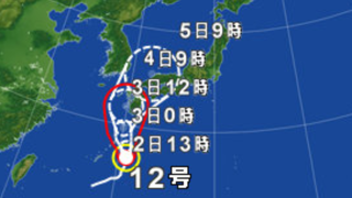 現在台風12号が近畿地方に接近する恐れが出てきています。 9月5日(月)、午前7...