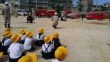 体験学習の後、放水訓練を見学しました。 終わりの講評では 「今日の訓練をぜひお家...