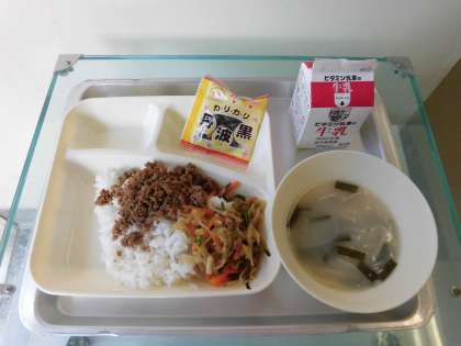 今回の給食では、ひき肉、切干しだいこん、きゅうりなどを使っていま