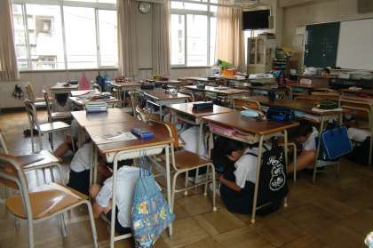 訓練を前に学級では、東日本大震災発生時の宮城県での被害にについて、勉強している学級もありました。