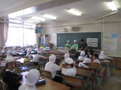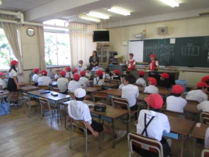 各班は15〜16人ずつで1年生から6年生までが揃っています。今日は、まず教室で班のメンバーが初顔合わせをしました。一人ずつ緊張しながら自己紹介をすると、みんなからあたたかい拍手がおこっていました。