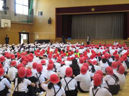 その後は講堂に移動して、集会時の並び方を覚えました。今年1年、この元気グループで子ども達が企画する楽しい集会を行っていきます。早く、メンバーの顔と名前を覚えて、仲良く楽しい集会ができるといいですね。