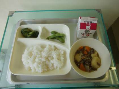 肉じゃが・きゅうりのかつお梅風味・えだまめ・ご飯・牛乳です。