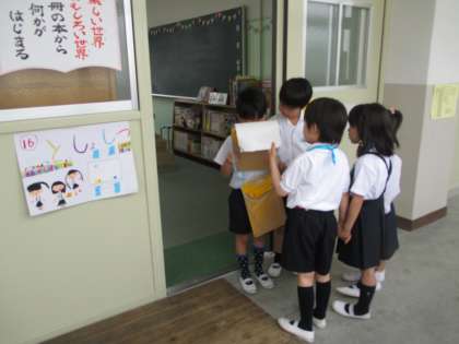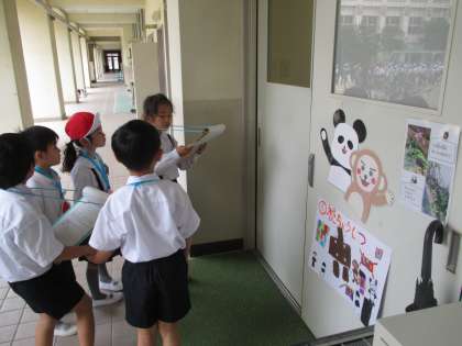 本日、2年生が1年生を連れて校内を案内する「学校探検」を行いました。2年生は、今日のために片江小学校の色々な部屋の絵を描いて掲示したり、1年生にわかりやすい説明を考えたりしてくれていました。