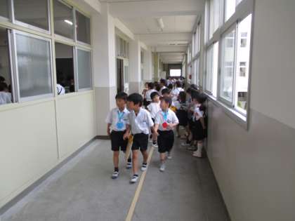 1年生は、2年生の説明を一生懸命聞きながら、興味深そうに部屋をのぞいていました。