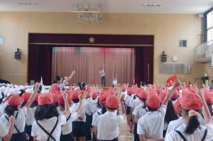 本日、音楽集会で「運動会の歌」の練習を行いました。
