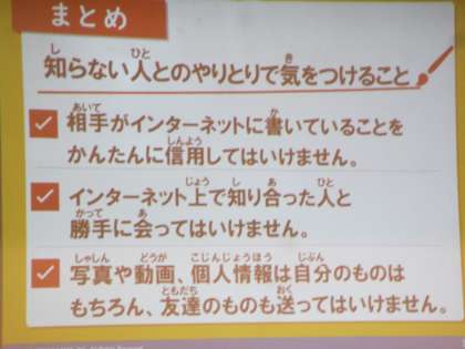 名前や、年齢、性別を偽ってあなたに近づいてくるかもしれないので、気を付けましょうという、お話でした。