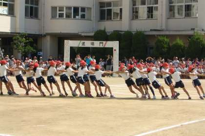 「つなひき」では長く太い綱を「オーエス・オーエス」の掛け声と共に、一所懸命引っ張っていました。