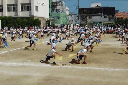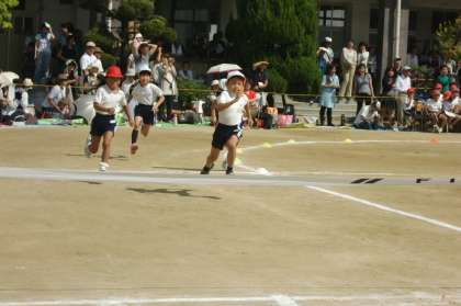 2年生は「ゴールをめざして」「大玉ころがし」「光のシグナル」に出場しました。