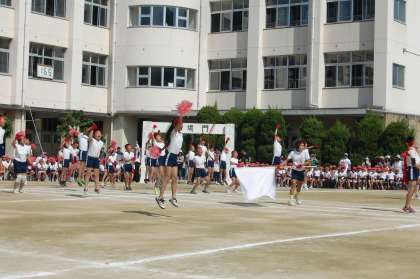 お昼休みに発表された、成績の途中経過を受け、応援合戦が始まりました。