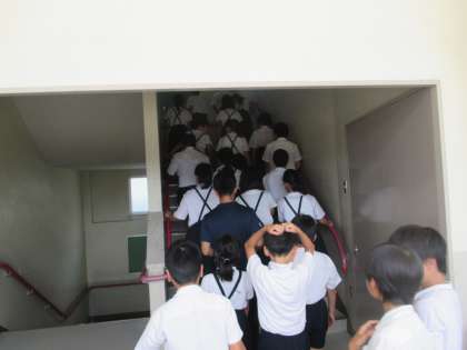 揺れがおさまった後、大津波警報が発令されたという想定で、より高いところに避難する訓練が行われました。