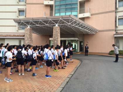 閉講式を行い、ホテルを出発します。サンペルラ志摩の皆様、お世話になり、ありがとうございました。(8:35現在)