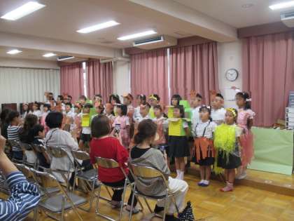 3年3組は、ミーティングルームで劇や合奏の発表を行いました。