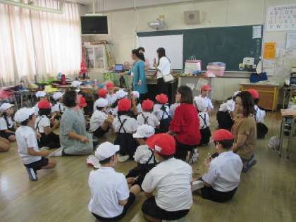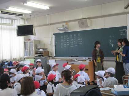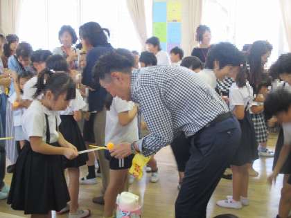 わりばしでピンポン玉を落とさずにリレーするのは、とても難しそうでした。赤白帽をかぶって、まるで運動会のリレーのように楽しむクラスもありました。