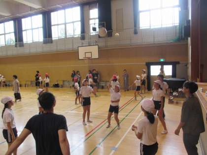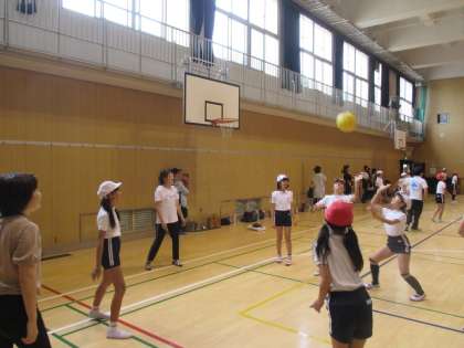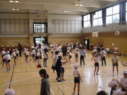 体育館では、子どもたちの輪の中に保護者の皆さんが入り、ボールを落とさぬように必死でボールを追う姿があちらこちらで見られました。
