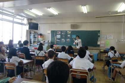 本日、6年生は相生中学校から来ていただいた先生による、出前授業を受けました。