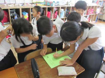 片江フェスタ当日は、元気グループをAB二つの班に分けて店を回ります。今日はまず、ABそれぞれのグループ長と副グループ長を決めました。その後、初めに回るお店を決めたり、店を回る時の並び方を確認したりしました。お店は、今年も各クラスごとに趣向を凝らしてくれることと思います。11日の当日が楽しみですね。