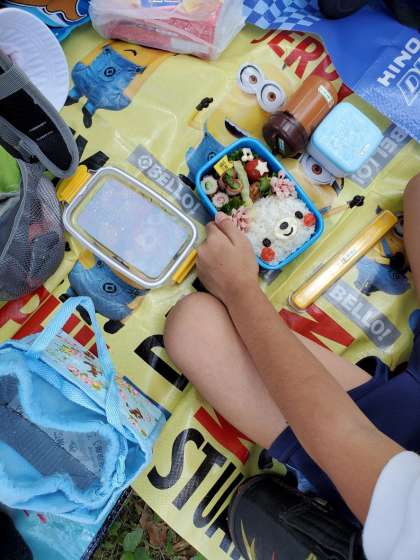 たくさん遊んだ後は、お楽しみのお弁当タイムです。