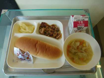 豚肉と野菜のケチャップソテー・スープ・スイートポテト・