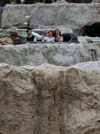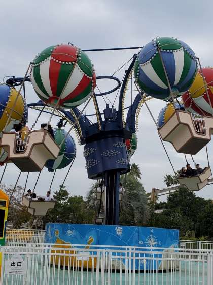 モザイクをかけて表情が伝わらないのが残念ですが、みんな本当に楽しそうです。次々と色んな乗り物に乗っているようです。