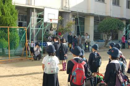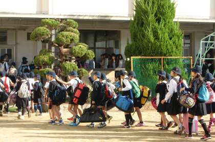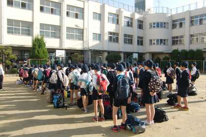 本日より、5年生は海洋センターへ一泊移住に行きます。昨日までは天候を心配していましたが、今朝は秋晴れの良いお天気に恵まれました。朝の出発式を終え、いよいよ出発です。