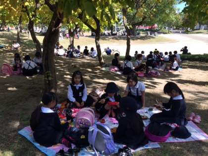 天神橋筋商店街を見学した後は、扇町公園へ移動しお弁当を食べました。とても良いお天気で、楽しいお弁当タイムとなりました。