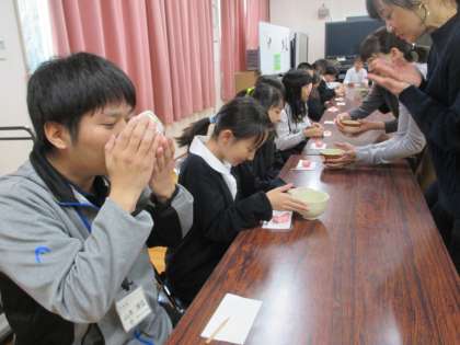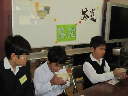 また、実際に茶筅を持って、お茶をたてさせていただくこともできました。美味しいお抹茶をおかわりする子もいて、時間いっぱいお茶を楽しませていただきました。