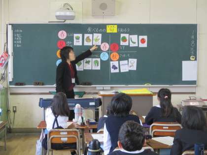 本日3年生で、東成区栄養教育推進事業による栄養学習が行われました。今日のめあては「食べものの旬を知ろう」でした。