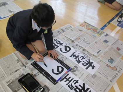 1時間目に6年生は「書き初め」をしました。「書き初め」には、「一年の抱負や目標を定める」「字の上達を祈願する」の二つの意味があるそうです。