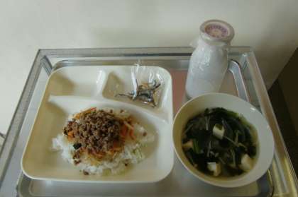 ビビンバ・わかめスープ・アーモンドフィッシュ・牛乳