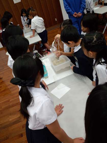 本日、4年生は柴島浄水場へ社会見学に行きました。私たちが普段飲んでいる水が、どこからきてどのようにして飲み水になるのかを、勉強してきました。水が浄水される仕組みなども実験を交えて教えていただきました。勉強の後は、すぐ近くの広場でお弁当を食べてきました。秋晴れの青空の下で、楽しく過ごしてきました。