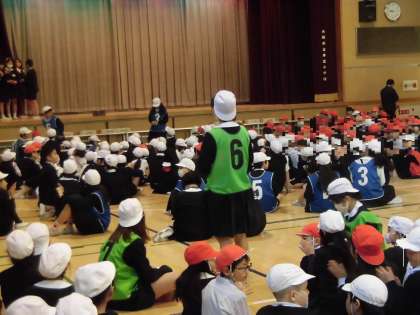 最後は同じチーム(異学年交流)で何枚獲得したかを数え、みんなで拍手を送りました。みんなが楽しめる集会になりました。集会委員会の児童もがんばってくれました。