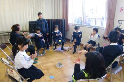 あやとり・折り紙・お手玉・コマ回し・けん玉などたくさんの昔の遊びを体験しました。地域からは大勢の方が、子どもたちに昔の遊びを教えに来てくださいました。教え方がお上手なので、子どもたちはすぐに遊びを覚えて楽しんでいました。最近では見かけない遊びもありましたが、今後も続けて遊んで欲しいものです。