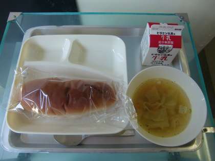 豚肉とキャベツのスープ・黒糖パン・牛乳です。