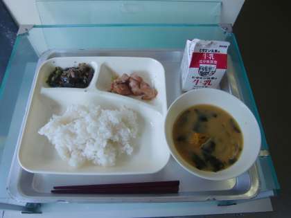 鶏肉のてり焼き・みそ汁・なすのそぼろいため・ご飯・牛乳です。