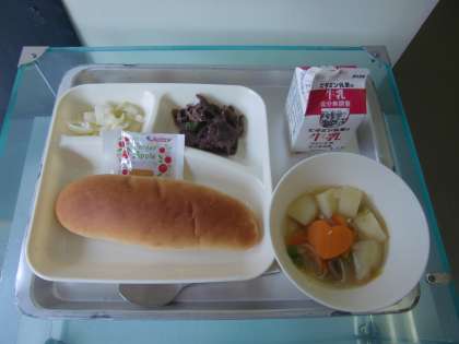 牛肉の香味焼き・スープ煮・サワーキャベツ・大型コッペパン・