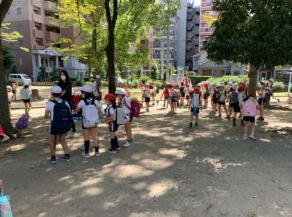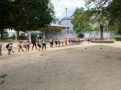 トイレを済ませて集合し、これから片江小学校まで帰ります。
