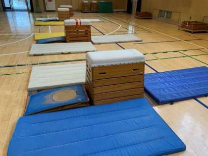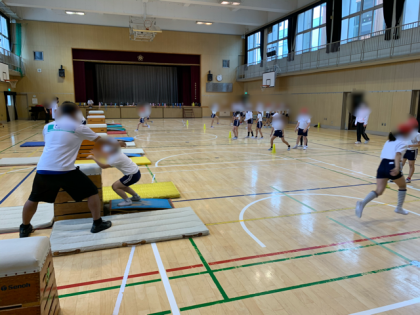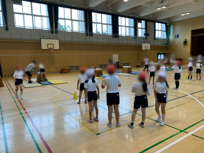 「ロイター板を強く踏み切ろう!」をめあてに跳び箱の開脚跳びに挑戦し、補助をしてもらったり、アドバイスをしてもらったりしながら練習をしました。