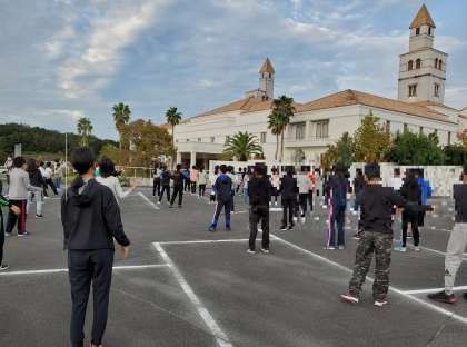 朝の健康観察と先生からの諸注意の後、みんなで『ようかい体操』をして、目を覚ましました。