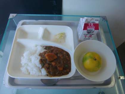 ポークカレーライス・はくさいのピクルス・みかん・牛乳です。