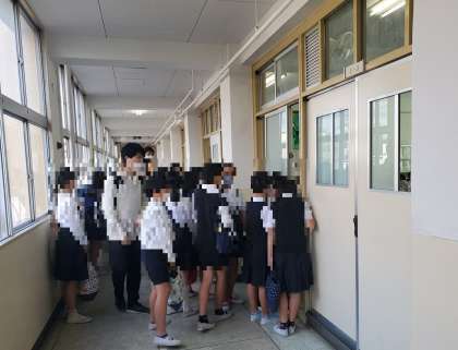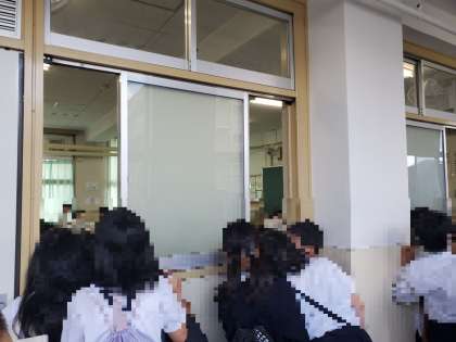 今年は、コロナ感染予防対策のため、廊下から短時間の参観になっています。