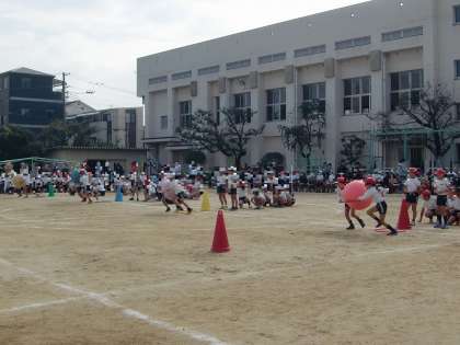 3年生の団体競技「ほな、大玉運びちゃうかぁ…」です。